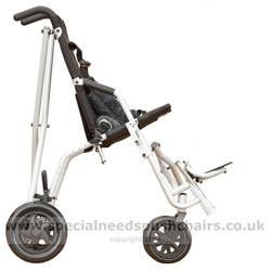 The Trotter is 'crash tested' it is Approved for use in a vehicle tested to ANSI standard 7176/19, subject to the relevant optional accessories being used. The Trotter is CE marked and has been tested by the factory to ISO 7176/8 The Trotter has flexible plastic non pneumatic wheels which operate well on smooth surfaces not rough ground. The Seat can be configured to suit the occupant and has adjustable seat angle. |